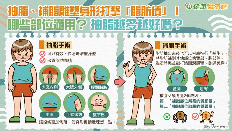 抽脂越多越好嗎? 醫:抽脂、補脂雕塑身形