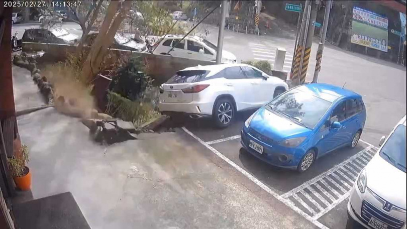竹東鎮社區廣場突發地面坍塌! 汽車值墜3米深坑幸無人傷亡