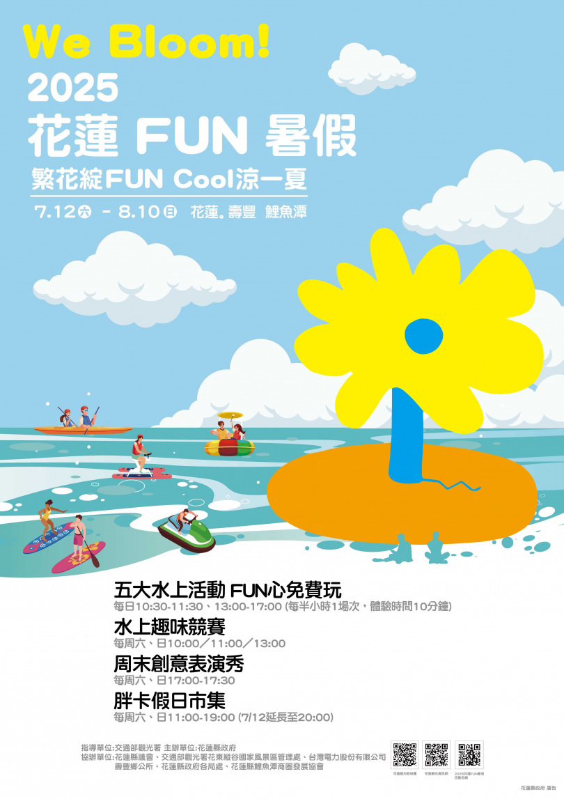「2025花蓮FUN暑假」邀請全台民眾從7月12日至8月10日期間齊聚壽豐鯉魚潭,暑假到花蓮玩水涼一下!活動官網(hlfun.hl.gov.tw)即日起正式上線,完整揭露活動資訊與報名方式,讓國內外旅客能夠在青山綠水間享受沁涼歡樂的夏日旅程。活動集結五大水上設施、趣味競賽、創意表演、胖卡市集與在地美食,打造專屬花蓮的水陸雙享夏日派對。