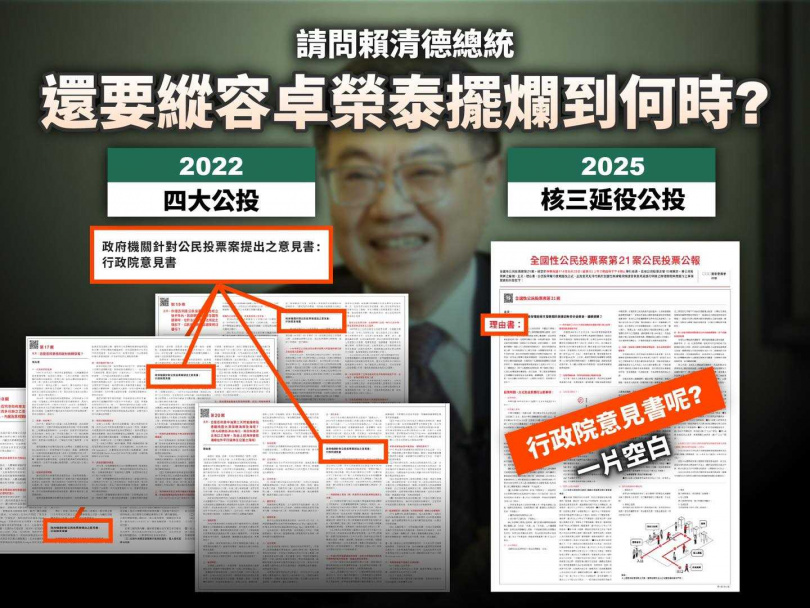 「核三公投」無反方政院意見書 白委怒問賴總統:要縱容卓榮泰擺爛到何時?