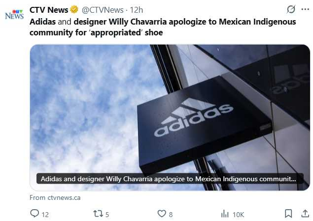 墨西哥政府正向運動品牌Adidas追討賠償,指控其新推出的鞋款「Oaxaca Slip-On」涉嫌挪用瓦哈卡州原住民社區的傳統涼鞋「華拉契」(huarache)設計,且未經授權便使用,違反《文化遺產法》。