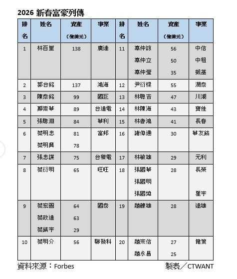 此外,同為兄弟檔的還有常客頂新集團魏家四兄弟,魏應充、魏應州、魏應交、魏應行,以及長榮集團張家兄弟,張國華、張國明與張國煒;長榮海運2025全年合併營收創第四高成績,年終獎金海發10個月讓人羨慕,也正計畫投入約 462億元訂造23艘全貨櫃輪優化總運能,張國華身價也跟著上升。